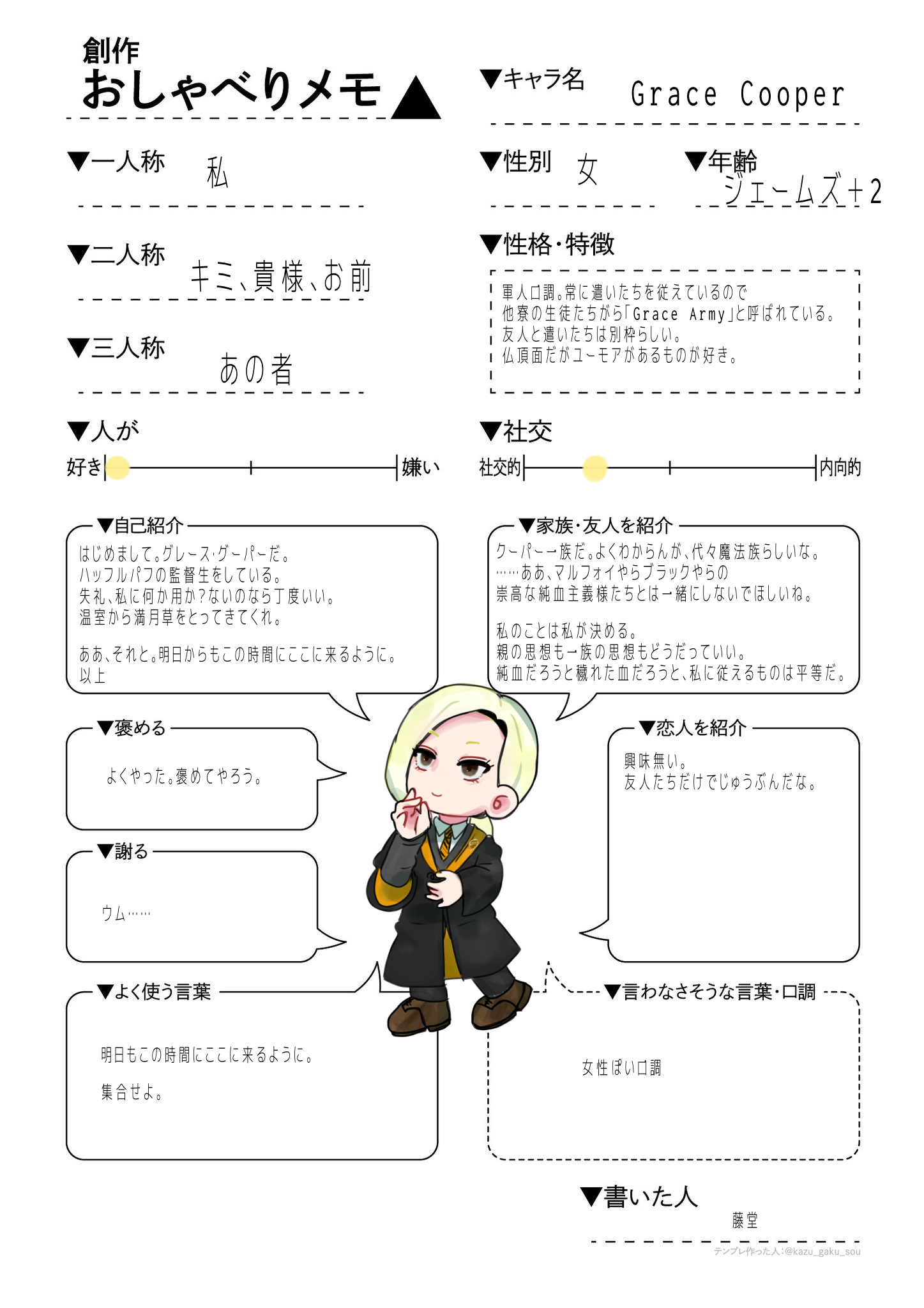 グレース・オフィーリア・クーパー Grace Ophelia Cooper (ホグワーツ時代)