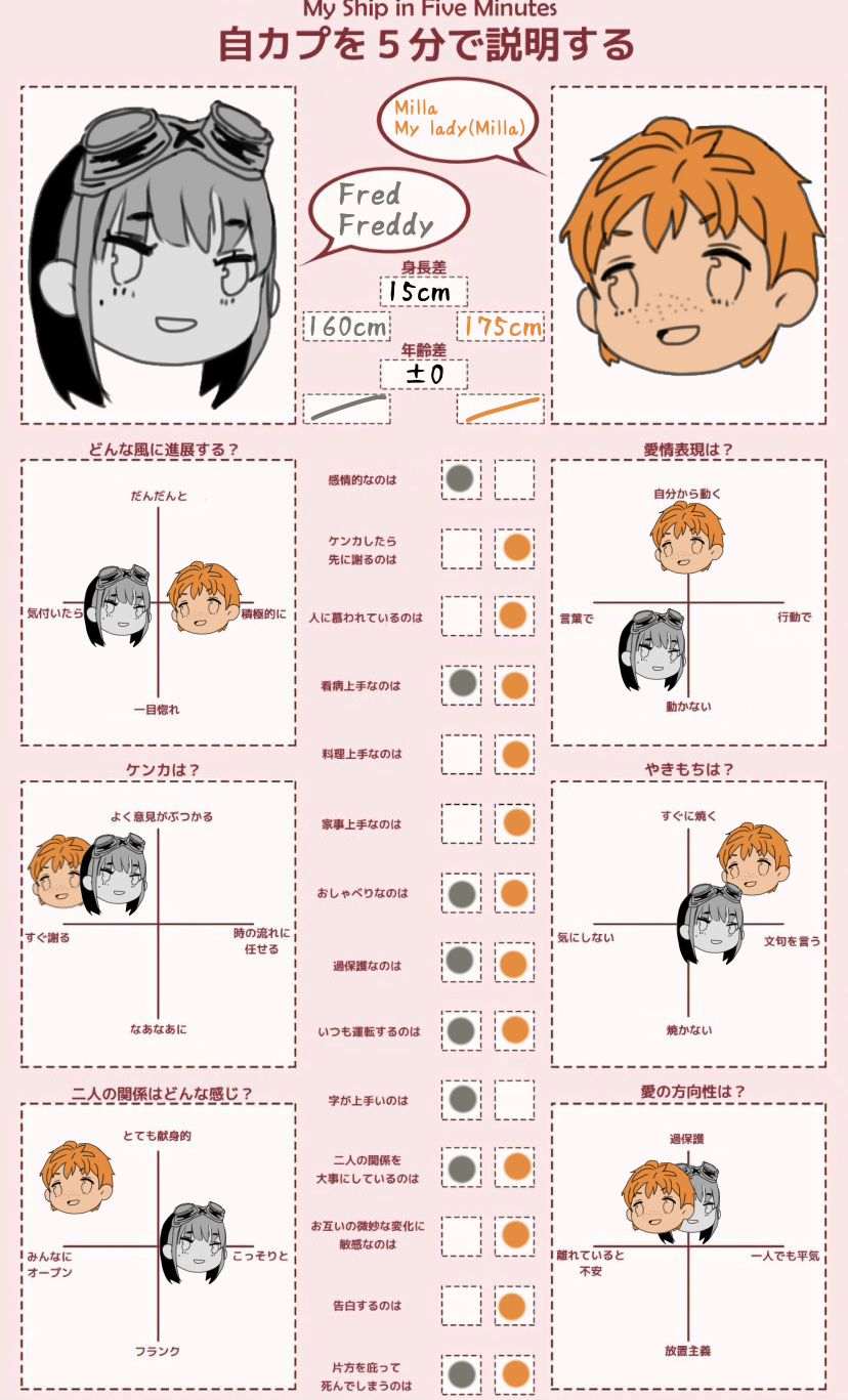 フレッドは幼馴染であり家族のような存在だと思っていたが、とあることをきっかけに彼に対して無意識の恋愛感情を抱くようになる。それよりも前にミラへの恋愛感情を意識していたフレッドに告白されることにより、ミラも自分が彼を好きだったことに気づいて晴れて恋人同士となる。