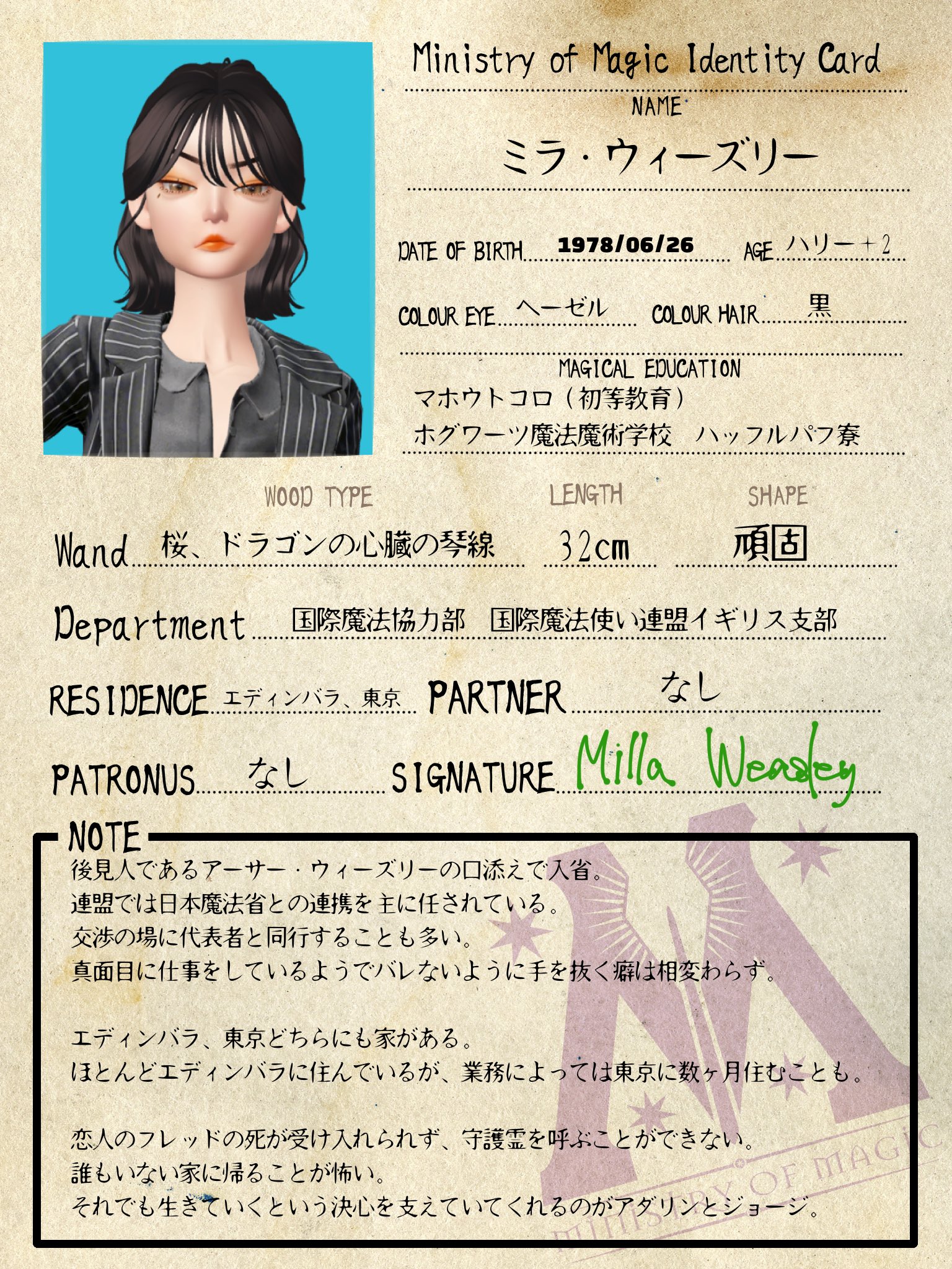 母親が日本からイギリスへ転勤することになり、在学していたマホウトコロを初等教育のみで卒業し、ホグワーツに入学。